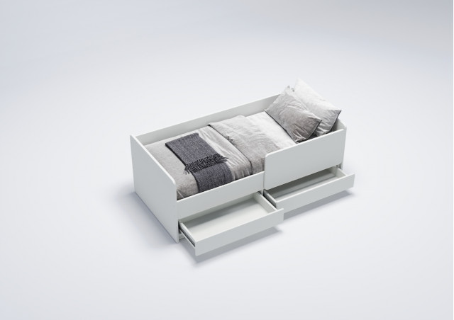 Основание кровати выполнено из реечного настила, обеспечивая правильную поддержку матраса и комфортный сон для ребенка. Невысокая конструкция кровати облегчает доступ для ребенка и способствует развитию его самостоятельности.